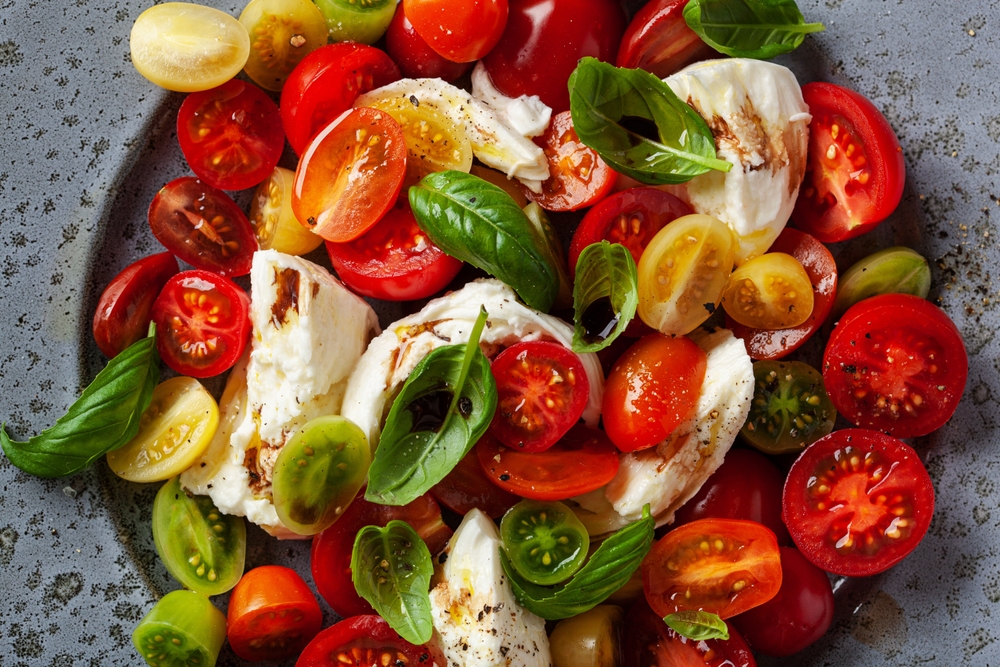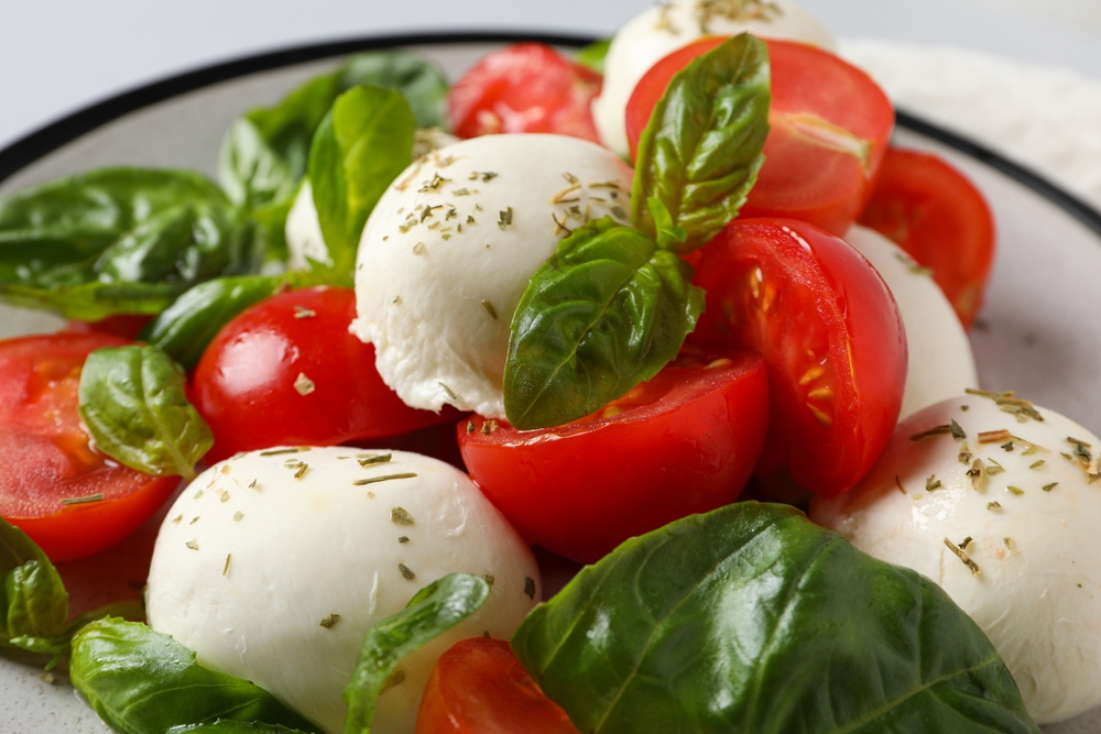 - Caprese Salat: mit Tomaten, Mozzarella und Basilikum