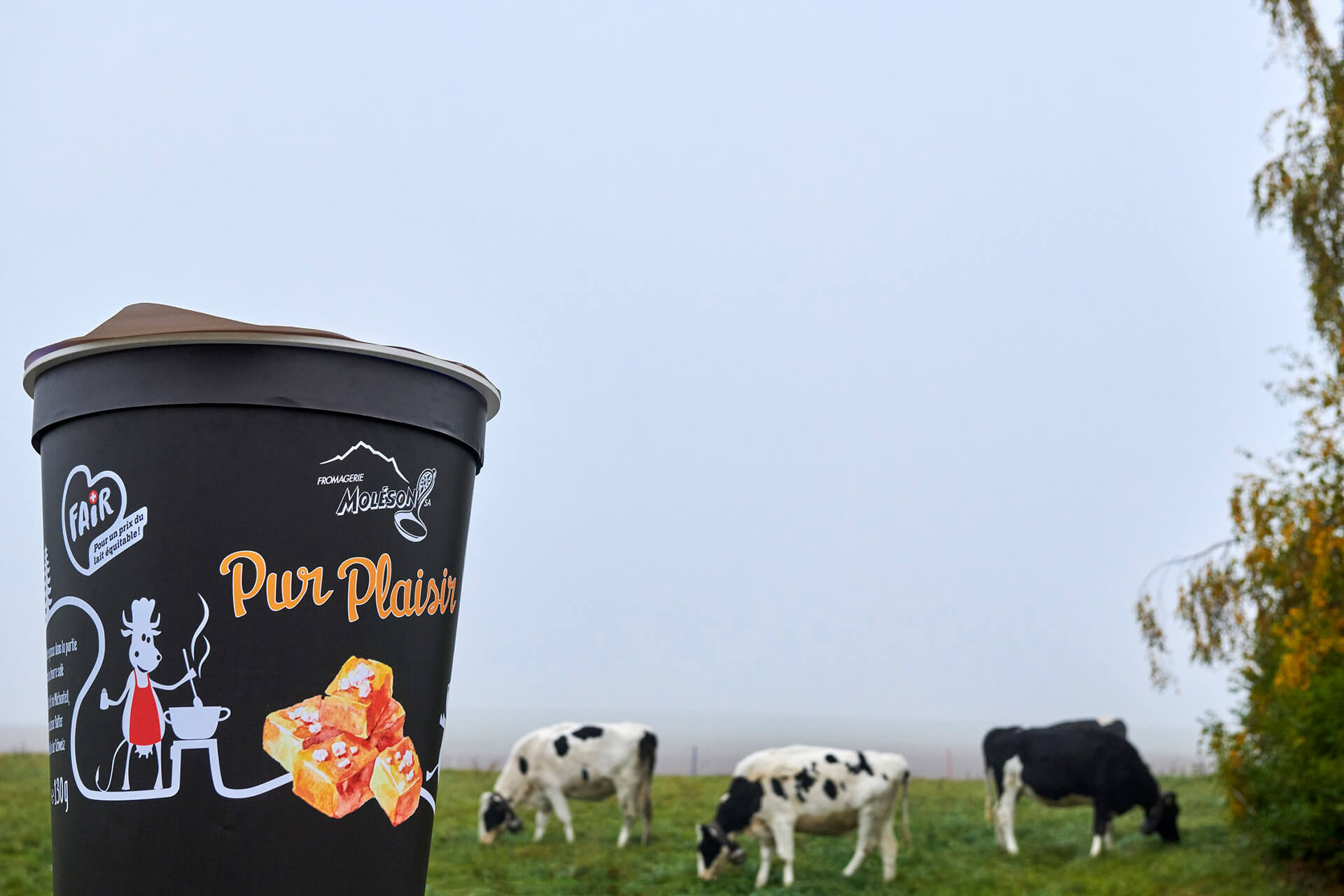 Erfolg für die Bäuerinnen und Bauern der “Initiative FAIR”: die Qualitätsmolkerei Moléson AG lanciert drei Dessert-Jogurts (Karamell mit gesalzener Butter, Himbeere-Schokolade und Zitrone) sowie Pastmilch mit dem Gütesiegel “FAIR”.