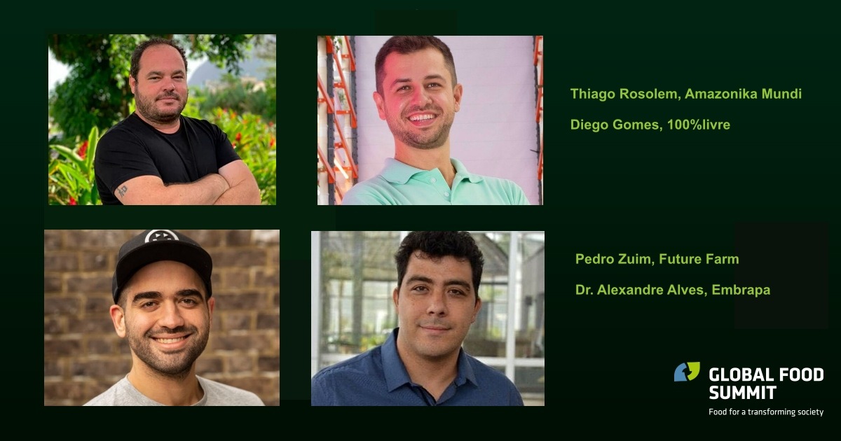 Vertreter der drei brasilianischen Start-ups auf dem Global Food Summit in München, und der Leiter von Embrapa Agroenergy. / Weiterer Text über ots und www.presseportal.de/nr/128584 / Die Verwendung dieses Bildes ist für redaktionelle Zwecke unter Beachtung ggf. genannter Nutzungsbedingungen honorarfrei. Veröffentlichung bitte mit Bildrechte-Hinweis.