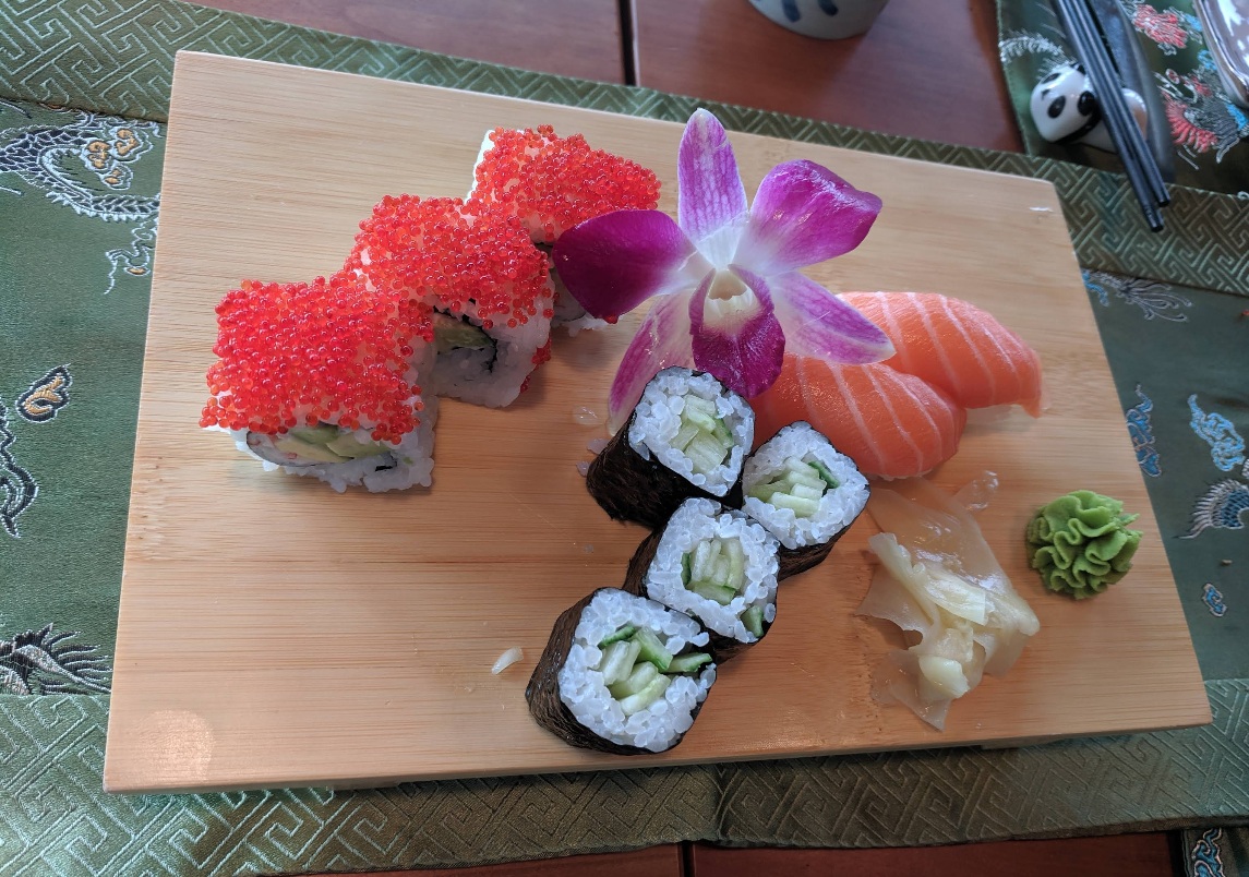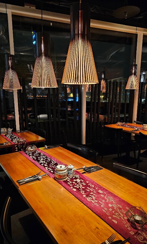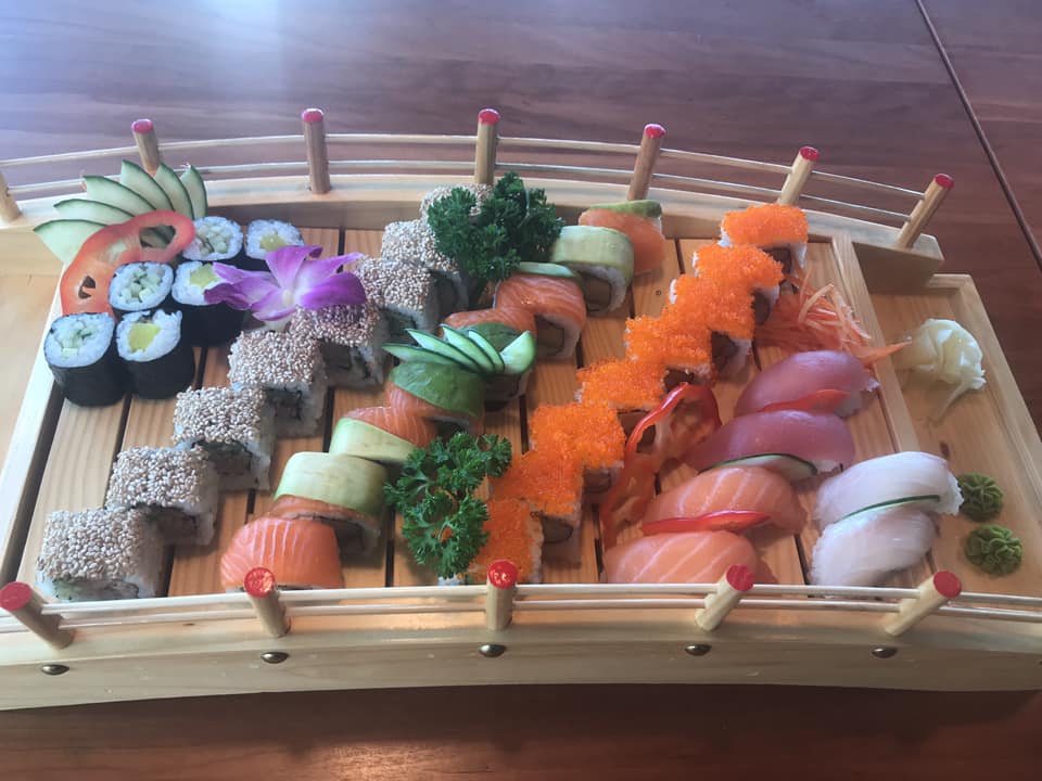 Besonders hervorzuheben ist das Sushi-Angebot. Klassische Nigiri, bunte Maki, kunstvolle Uramaki oder flambierte Spezialrollen treffen hier auf fantasievoll gestaltete Platten zum Teilen. Sashimi, Gunkan und Temaki ergänzen die Auswahl – vegetarisch, mit Fisch oder flambiertem Fleisch. Auch Kinder finden eigene Menüs auf der Karte.