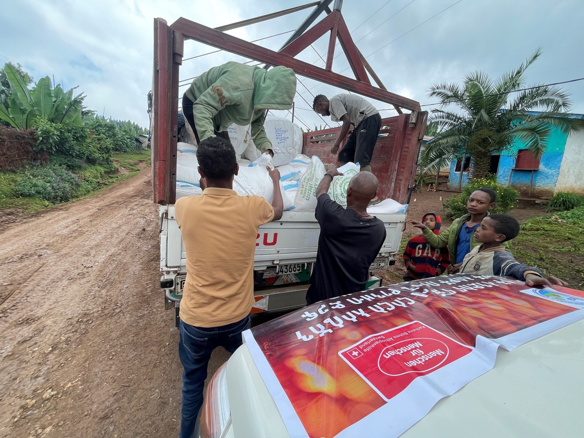 Verteilung von Nothilfe für die Erdrutsch-Opfer in Raphe durch die Schweizer Stiftung Menschen für Menschen / Weiterer Text über ots und www.presseportal.ch/de/nr/100007199 / Die Verwendung dieses Bildes für redaktionelle Zwecke ist unter Beachtung aller mitgeteilten Nutzungsbedingungen zulässig und dann auch honorarfrei. Veröffentlichung ausschließlich mit Bildrechte-Hinweis.