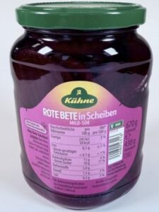 Trotz umfangreicher präventiver und IFS-zertifizierter Sicherheitsmaßnahmen kann nicht ausgeschlossen werden, dass sich in vereinzelten Gläsern der Charge “Kühne Rote Bete Scheiben, 720ml im Glas” (Füllmenge 670 g, Abtropfgewicht 430 g) Glasstücke befinden können.